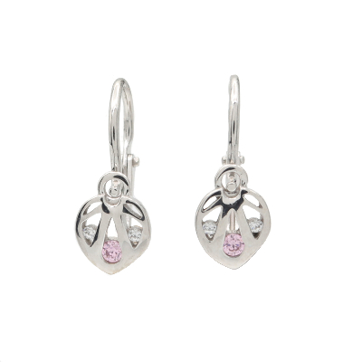 35005WPDětské náušnice z bílého 14ti karátového zlata. Zdobené zirkony. Přední zapínáni. Tvar květinky - pomněnky.