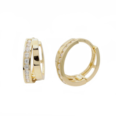 OT3562Dámské, dívčí náušnice ze žlutého 14ti karátového zlata. Kruhy zdobené bílým zirkonem a květinkou.
